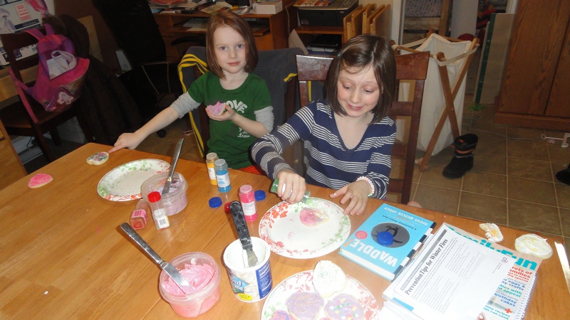 February life picked up a bit. We decided to take the kids to Disneyland this year, Sam was old enough to go on most the rides. We had a blast running but we also wore ourselves out. More on this trip later, it gets its own post. Valentine's Day was a chill day, we aren't too big on this holiday. We made heart cookies, the girls iced them and ate them as well. But we did save some for friends and neighbors and ran them around to show our love. David and I ordered in and enjoyed a dinner together after the kids went to bed, and for dessert-Red Velvet Cake, my favorite, yum!