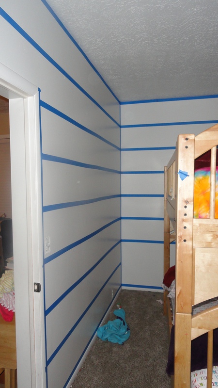 We finished the taping, that took forever. But it was worth it! I went through and painted a glaze along the tape so the paint wouldn't bleed through. That was quick!