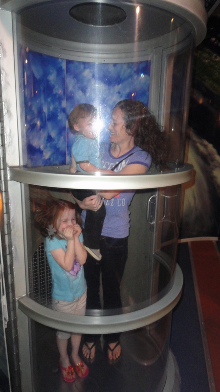 We also went to the Discovery Museum for a break from all the Disneyland craziness. I think it went well. Maddie ran around everywhere and tried everything. I rarely saw her, only when I went looking for her. But she really enjoyed this hands on museum. Livie did her own thing as well but she hung around us more. Sam liked to stick with a few key exhibits. As long as it had balls, cars, or toys he was all over it. He didn't care much for anything else. Sam and Livie did it with me, Sam did not like the wind much. I had to shield him! My mom and Chad did it too.Overall I think we had a great time at Disneyland, I think every trip has its glitches but we got some great memories from it as well. Sam's first trip to the park, Livie reliving what she barely remembers from her first time and finding new exciting rides, Maddie being brave and trying new and exciting things, My parents hopefully survived a very exhausting but fun trip, and David and I just enjoying our kids having a blast. Great Memories!