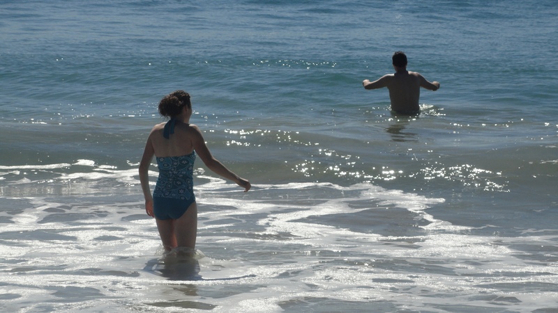 Grandma and Grandpa I am pretty sure enjoyed the trip. Even though we are probably the most disorgnanized, unplanning, chaotic family trippers around. We just winged it most of the time. haha! Even when we went to the beach, we decided last minute what beach we went too. But I think we picked a good one. We went to Laguna Beach, the south end. Chad and I went out till our toes could barely touch and rode the waves, I might add that the water was sooooo cold. I was frozen solid when I got out. Good thing it was 70 degrees because it took me awhile to warm back up. I felt like I was young again, like we did in San Diego together (its not often I feel young anymore). David and Sam hung out together and walked along the shoreline. Maddie ran around the whole beach collecting seashells of all shapes and sizes. She was so bummed that we didn't let her take any (well she snuck a few with her before we left, silly Mads). Olivia got cold too fast and just sat on the shore in the sand and played in it. The waves kept sweeping her off her feet. My parents checked out the tide pools that were close by.