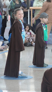 Mads went on all the big rides except Indiana Jones, she made it through the line but couldn't get on. Which is understandable because, wow! I thought the ride was crazy! She got scared on Tower of Terror as well, David told her that they just need to get on this elevator and then they can get off (the ride was the elevator- and she was so upset with him after that.). She also trained to be a Jedi (look at this girl's face in the pictures, she was so pumped to be trained!!). The biggest surprise was the fact that Mads loved Space Mountain, totally wouldn't have guessed that. Chad and I rode together on Space Mountain, which a bit nostalgic. We did this when we were teens, and we were like gushing over how the ride was and how it was. It was a pretty cool feeling!